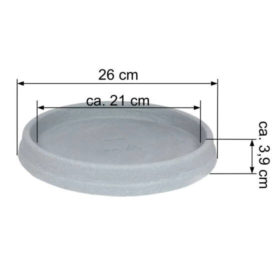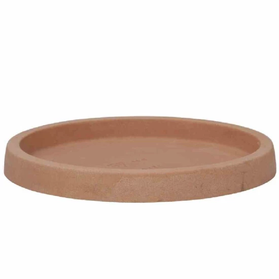 Der Untersetzer wird aus hochwertigem Kunststoff (PE) im Rotationsverfahren hergestellt. Dadurch ist er absolut frost- und bruchsicher. Die Form als auch die Farbgebung wurde der klassischen Toscana-Terrakotta nachempfunden.