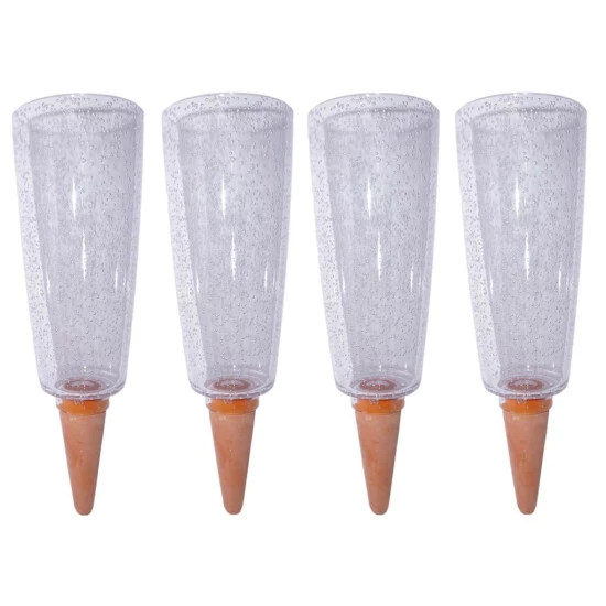 Ein stylischer, wie ein großes Sektglas aussehender Wasserspeicher für Ihre Pflanzen ist COPA! Und dieser hier ist mit dem Volumen für 150 ml Wasser ein prima Pflanzenhelfer. Sehr hübsch wirkt auch bei dem 150ml-Modell die Perlenmusterung in dem hochwertigen, transparenten Kunststoffgefäß und vor allem bei Sonnenlicht kommt dies bestens zur Geltung. So sieht jedes COPA-Bewässerungssystem wie ein prickelndes Champagner-Glas aus.Der sich unten befindende Tonkegel versorgt kontinuierlich die Pflanzenwurzeln mit genügend Feuchtigkeit und Sie können sich ebenfalls entspannen!