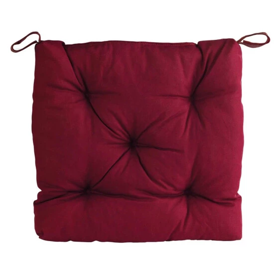 Stühle für Esszimmer oder Garten können noch so bequem sein, richtig gemütliche werden sie erst mit dem passenden Polster. GESA 5 in der Farbvariante Bordeaux ist ein absoluter Klassiker unter den Sitzkissen. Das modische, dunkle Rot wertet Ihr Sitzmöbel optisch auf und fügt sich ideal in jeden Wohnstil ein. Natürlich besticht das Kissen außerdem mit bestem Sitzkomfort. Dafür sorgt die extra dicke Polsterung von 8 cm. Gefüllt ist das Polster mit Schaumflocken, welche im Laufe der Zeit nur unwesentlich an Volumen verlieren und zudem geräuschlos sind. Setzen Sie einen Farbakzent und begeistern Sie Ihre Gäste beim nächsten Dinner oder der kommenden Grillparty mit dem gemütlichen Stuhlkissen.