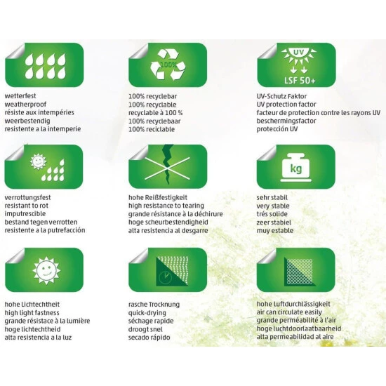 Durch seine Materialeigenschaften ist Polypropylen ideal für den Outdoorbereich, in dem es sehr viel rauer zu geht als im Indoorbereich, geeignet. Der Polypropylenstoff (PP) hält eine Spitzenposition unter den synthetischen Fasern. Die Reißfestigkeit ist besonders wertvoll für den Schutz gegen Wind und Wetter. Ebenso ist auf die wasserabweisenden Fasern Verlass wenn es um Schimmel und Fleckenproblematiken geht. Die Sun Garden Easy Sun Schutzhülle ist ein rundum qualitatives Produkt.