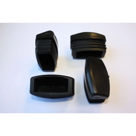 Fußkappen-Set passend für den ASS Alu Sun Star Comfort Klappsessel, Hocker und die Liege. Die Fußkappe hat ein Außenmaß von 40 x 20 mm. Pro Set sind vier schwarze Fußkappen enthalten.