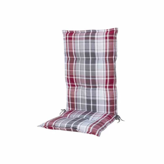 Polster für Gartensessel HL Sun Garden Dessin Naxos 10427-701 für Hochlehner Material: 100% Strukturpolyester Polsterung mit flauschiger Vliesfüllung und festem Schaumkern Haltebänder im Lehnenknick und Rücken handwaschbar Randabsteppung 2 cm Maße (LxBxH): 118 x 49 x 6 cm Farbe: karo grau-rot / pinkAuflage:Stuhl HochlehnerAuflage